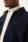 Cotton twill overshirt with chest pockets. Go for a winter look with this item. This jacket has longsleeves, a collar, a zipper and a loose fit. This item is made of 80% polyester and 20% wool.